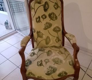 Vide maison comprenant : Canapé cuir 3 places fixe. Table de salle à manger en bois pour 6 places avec 6 chaises. Buffer bas, Armoire de chambre avec miroit. Diverses vaisselles, D