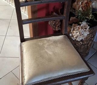 Fauteuil à dossier haut tapissé de style d'Aubusson, matériaux bois massif et tissus. Confortable, en très bon état, pas de trace d'usure , ni d'affaissement. hauteur : 1.00 l