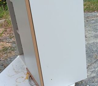 Meuble d'angle, haut cuisine, 2 étagères. Blanc et bois L 60, h 77, p 31 cm