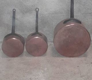 Av lots de 3 belles casseroles en cuivre propre ou à l unité pour décoration ou autres.