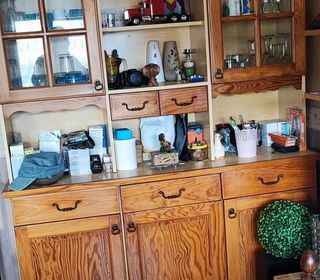 Vend petit prix vaisselier 2porte+niche centrale en haut et trois portes+3 tiroirs en bas. Dim:154x188x46 cm. Prévoir utilitaire pour le transport+ 2 personnes