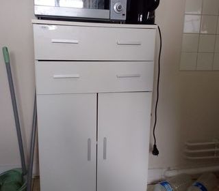 Pour cause de déménagement vendon en urgence : meuble de cuisine, blanc, 2 tiroirs, 2 portes, très bon état. Prevoir de récupérer soi même dans un appartement à l'étage avec asce