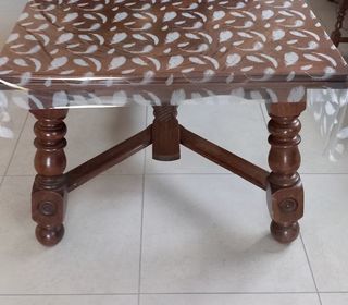 Table extensible en bois massif avec 6 chaises en bon état Table de 1m60 avec 2 rallonges de o.50 x o,96 de largeur Cette Table peut être en: - 160 (6 personnes) - 210 (8 p