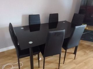URGENT pour cause de déménagement vendons TABLE A MANGER + 6 CHAISES, rectangulaire, noires ... ETAT NEUF PREVOIR de récupérer soi même dans un appartement à l'étage, avec asce