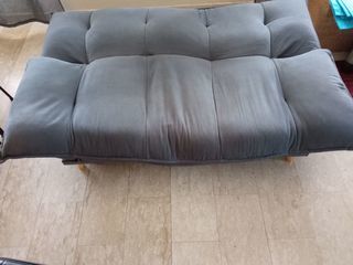 Canapé clic-clac en velours. L'assise centrale sest affaissée avec le temps (utilisé depuis 2020). Mais bon état général. Je le vends à 30 €. À récupérer sur place à Antony
