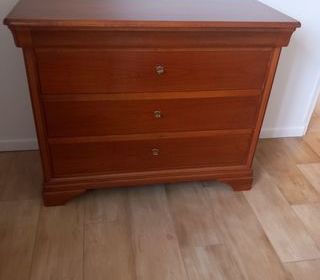 Particulier vous propose cette charmante commode de 3 tiroirs + un petit tiroir , L,1,08 M l ,0,49 M H, 0,87 M Bon état général Prix doux : 30€ Premier arrivé, premier servi ,