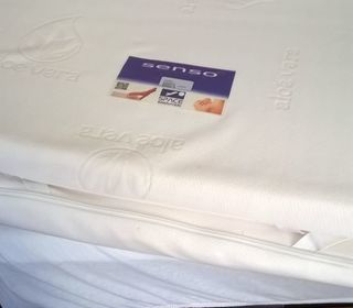 Caractéristiques techniques A) 5cm, Mousse à mémoire de forme Senso-tech 75 Kgs/m3 haute densité. C) Housse intérieure de protection. D) Housse extérieure confectionnée avec un