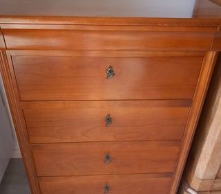 Particulier vous propose cette charmante commode de 4 tiroirs + un petit tiroir , L,0,76 M l ,0,46 M H, 1,06 M Bon état général Prix doux : 30 € Premier arrivé, premier servi ,