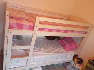 A vendre lit superposé URGENT Quelques trace d usure sur les coter du lit Les 2 matelas sont compris dedans Les lits superposés peuvent être séparés pour faire 2 petits li