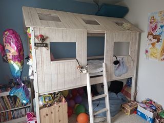 Je vend un lit cabane en parfait état, je change pour un lit mezzanine. Petit escalier, grand espace en dessous le lit pour rangement ou autre ,plusieur fenêtres. Hauteur max 200cm
