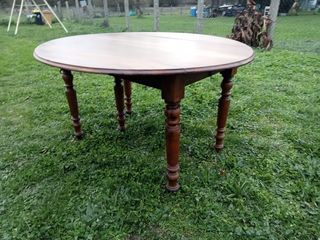 Vend table ovale 6 pied a rallonge en noyer massif Louis Philipe . Manque les rallonge . a retirer a mon domicile , dimensions plateaux 128 cm sur 112 cm 71 hauteur , avec rallong