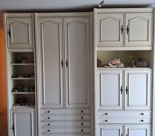 Buffet haut robuste (idéal pour de la vaisselle lourde par exemple). État neuf : pas la moindre égratignure. Dimensions : L 118 x l 50 x H150 cm