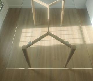 Bonjour, Je vends cet ensemble table rectangulaire et 4 chaises acheté chez Conforama. Lot composé: - d'un plateau en verre trempé avec 4 pieds en métal effet bois clair vi