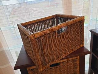 LOT 2 CHIFFONNIERS 3 TIROIRS EN ROTIN INDONESIEN Meubles importés d'Indonésie. Très beau bois, solide. 3 tiroirs en rotin Indonésien. Poids total d'un chiffonnier : 15 kg. Me