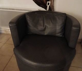 Fauteuil pivotant cuir gris antracite 70haut 70 profondeur etat neuf