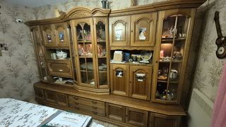 Buffet de salon 3.50 m de large sur 2 m de hauteur avec éclairage intérieur à chercher sr place. Possibilité de discussion sur le prix