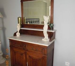 Type : Antiquité Meuble en chene d'époque, qui servait dans la chambre pour se laver, tout en chene, avec petite étagere en marbre et grande plaque également en marbre