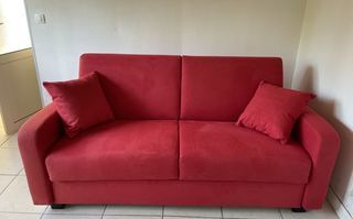 Je vends ce magnifique canapé-lit + 2 coussins en Alcantara rouge qui n'a jamais servi. (le plastique de protection est encore sur le matelas). Vous serez ainsi la première personn