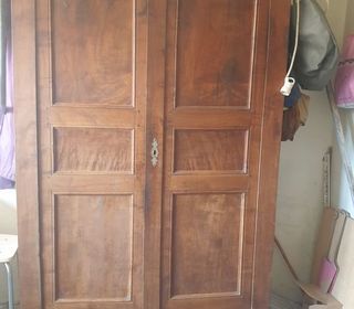 Armoire ancienne 2 portes avec étagères sur toute la longueur. Structure en bois massif.