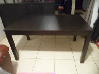 Table Ikéa extensible couleur noire dimensions : Longueur 140 cm extensible à 220 cm; largeur 84 cm.