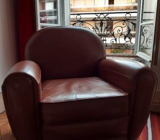Fauteuil club imitation cuir couleur cognac en très bon état. Marque Made. Prix neuf 368,95 €