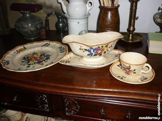 Type : Antiquité Service à vaisselle uniquement pour connaisseurs ! Années 40 de marque Longchamp, constitué de nombreuses pièces, soupière, saladier, plats , assiettes gra