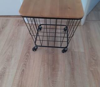 Tablette d' Appoint BOIS et FER sur Roulettes pouvant servir de Chevet, Bout de Canapé, Rangements divers ou juste Déco * Plateau Amovible 40 / 40 NEUVE 50 €