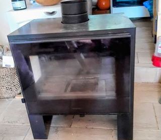 Poele à bois Panadero , bon état ,3 faces vitrées , buches de 50cm +3 morceaux tuyaux,+ 2 coudes.