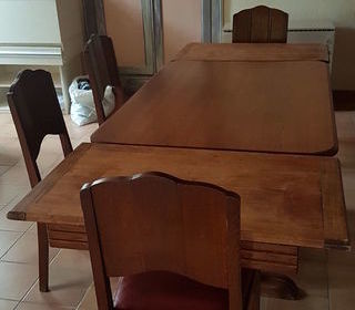 Table de salle à manger en chêne moyen massif avec rallonges (50cm x90cm).Longueur120cm x largeur 90 cm ; bon état.