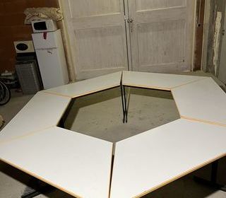 Lot de 6 tables losange en cercle diam 3 m , 12 places (photo 1) Possibilité d'acheter par lot de 2 tables (voir photo 2)