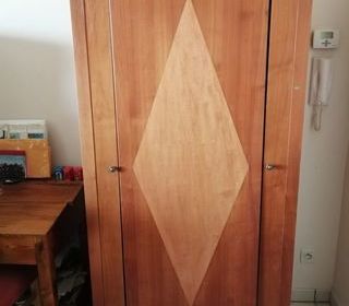 Vend ensemble lit sommier matelas pour une personne avec matelas bon état armoire et penderie et 2 commodes 1 tiroir un peu gondoler