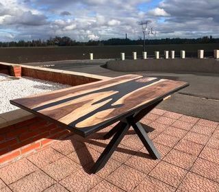 Je propose à la vente une table en noyer massif et résine époxy noire, fabriquée entièrement à la main dans mon atelier. Chaque détail a été travaillé avec soin pour créer une piè