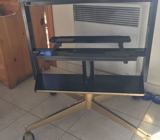 Comme neuf Marque ERARD réf.0036 couleur doré marron Prévu pour: -à l?Étage supérieur:TV -En dessous: magnétoscope ou autre -En dessous: cassettes ou autre Réglage des table