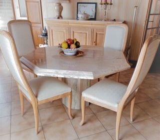 Vend table de salle à manger avec rallonge intégrée en merisier, bon état.