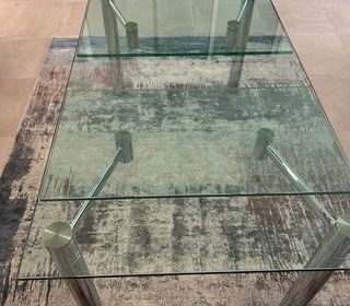 Vend table de salon en verre trempé de marque "DRAENERT" avec pieds chromé 172cm X 94cm avec ces deux rallonges intégrées de 50 soit une table de 272cm x 94cm les deux rallonges so