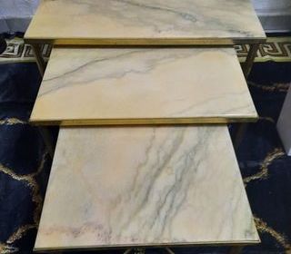Table gigogne avec pied en laiton et marbre vert . Excellente qualité. Faire offre raisonnable.