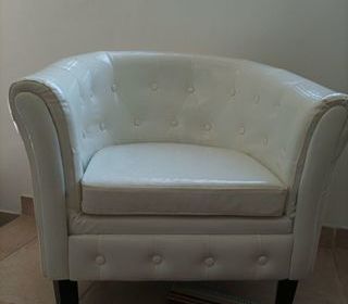 Fauteuil club avec repose pied - simili cuir blanc - neuf Dimensions 70X64X57 repose pied 32X31 à prendre sur place Paiement espèces valeur neuve 150 € vendu 80 €