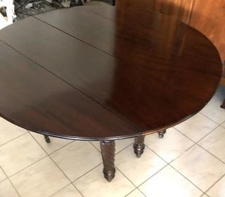 A DECOUVRIR TRES BELLE TABLE RONDE EN ACJOU MASSIF 19 EME 6 PIEDS TORSADES SUR ROULETTES AVEC RALLONGES POUVANT ACCEUILLIR 18 A 20 PERSONNES AUTOUR RARE CAR EN ACAJOU MASSIF