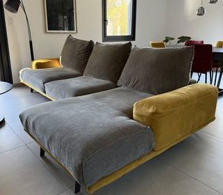 Canapé en très bon état, Mobilier de France, cuir et tissu Coussin déhoussable Livraison possible à 10 km aux alentours de Molleges