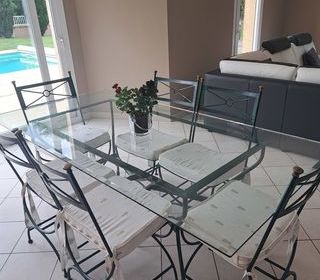 table de salle à manger avec 6 chaises empaillées, style bressan - dimensions table : 1,80 m long x 1mlarg - 2 rallonges possibilité de vente uniquement chaises