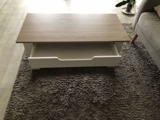 table basse salon, un tiroir blanche et bois. Longueur 95cm Largeur 47cm Hauteur 40cm