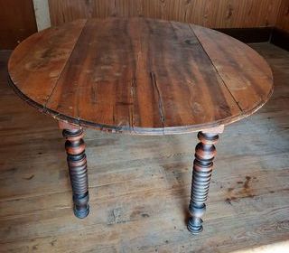 Table ronde en chêne avec possilbilité de rabattre 2 côtés pour en faire une petite table rectangulaire
