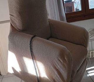 Fauteuil gris et marron Tisssu simili cuir Housses coussins avec fermeture Légèrement abîmé sur les coins des accoudoirs Pas de livraison