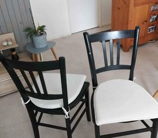 a vendre deux chaises noires a repeindre très bon etat dispo sur avallon uniquement pas d 'envoi especes demandées merci