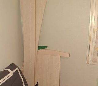 CHAMBRE PONT 2 PERSONNES UNE PENDERIE DE CHAQUE COTE , ET UNE ARMOIRE PENDERIE ET RAYONNAGE PARFAIT ETAT DONNE SOMMIER A LATTE AVEC .PAIEMENT ESPECES OU CHEQUE A L ENLEVEMENT