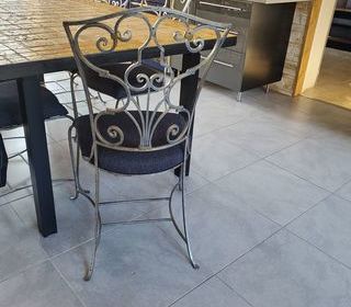 Table de salle pierre et fer forgé dimensions 225x115 avec 8 chaises fer forgé housse de sièges neuves