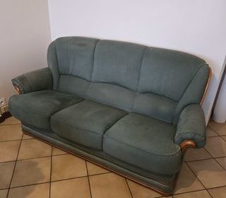 Canapé 3 places. Socle et montants en merisier. Assise en Alcantara couleur vert foncé. Dimensions : longueur 180 cm Largeur 90 cm Hauteur 87 cm A venir chercher sur pla