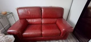 Beau Canapé cuir Salon de 3 places avec pouf assortie. Bon état. Confortable. Siège basculant à son extrémité. Mesures: 2m85 de long, 1m de largeur et 0,90 de hauteur