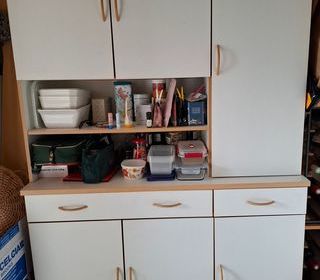 Vends buffet blanc Haueur 1,88 m Longueur 1,22 m Profondeur 45 cm pour le Haut ( 3portes et 1 étagère ) Profondeur 35 cm pour le Bas ( 3 portes 2 tiroirs )