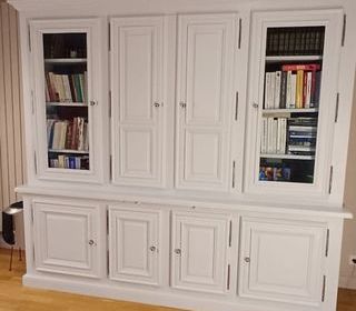 2 armoires basses 3 portes chacune et une étagère à poser, le tout en très bon état dimensions de chacune des 2 armoires basses L 80cm x H70 cm x l 48cm -Surmeuble étagère dimens